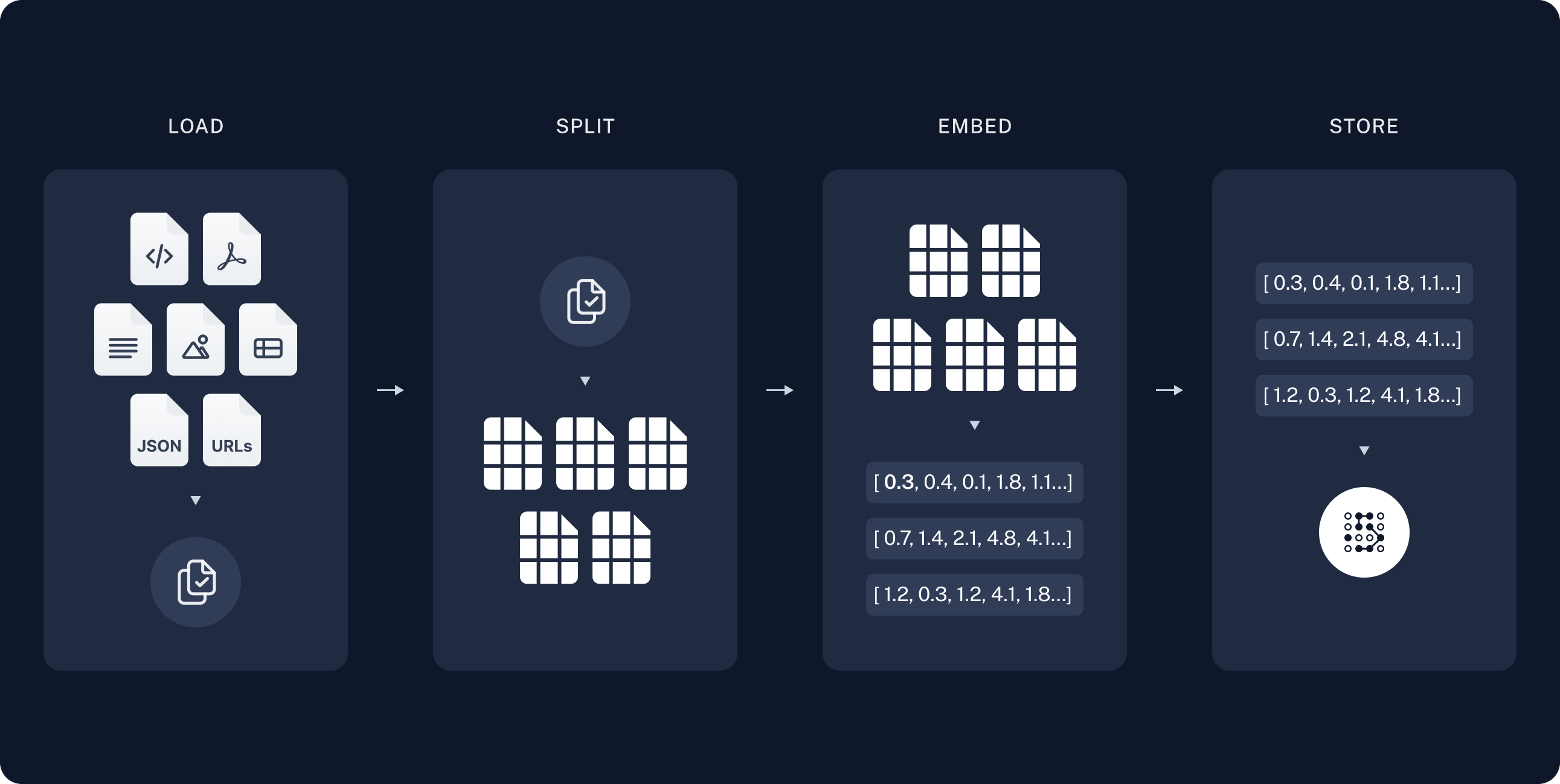 - 数据通过合理的分块(chunking),每块分别做向量化(embedding)后存到向量数据库