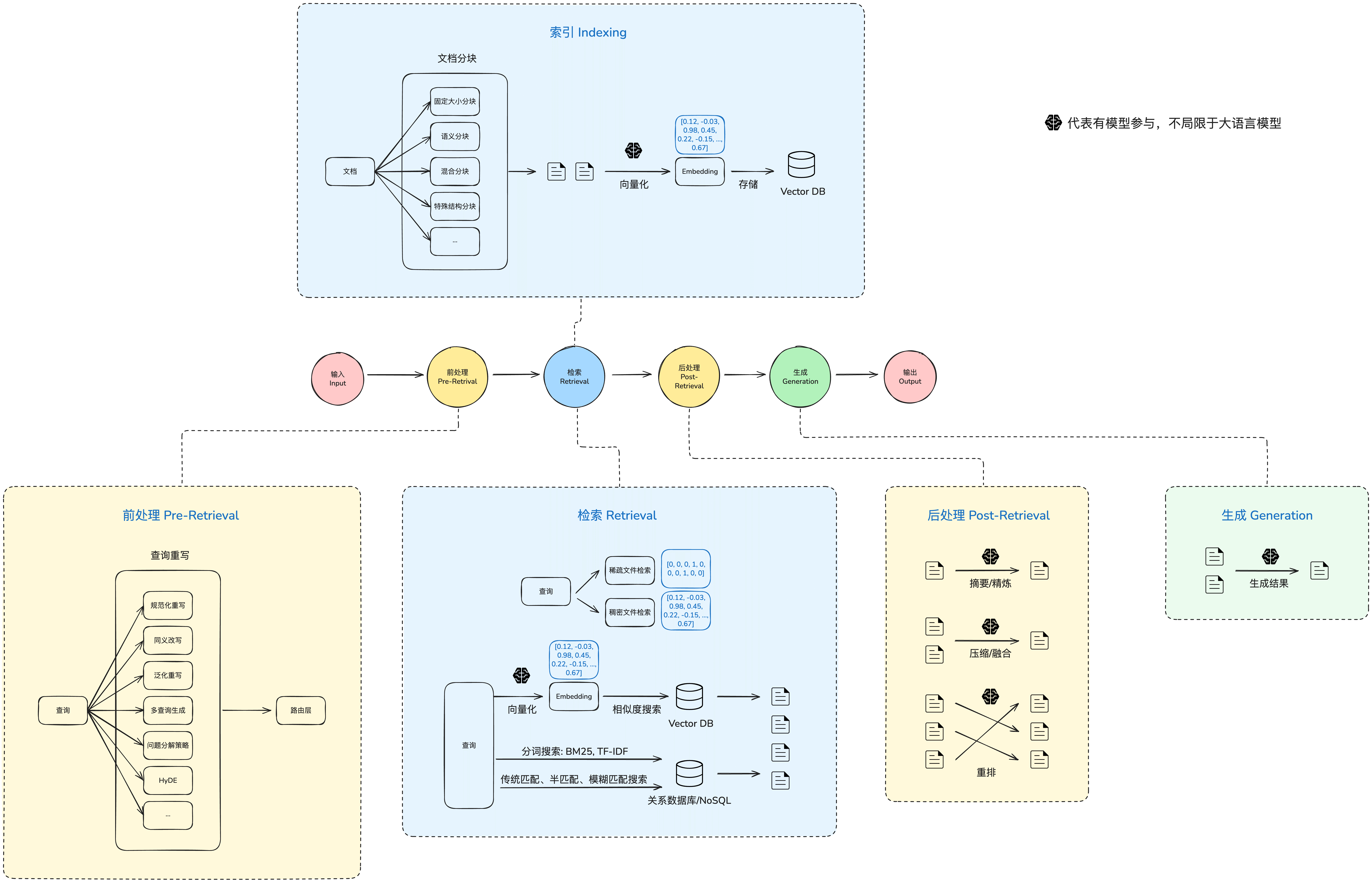 基础RAG(Naïve RAG) | - 基于关键词的检索(如 TF-IDF、BM25) | - 实现简单易用 - 适合处理基于事实的查询 |